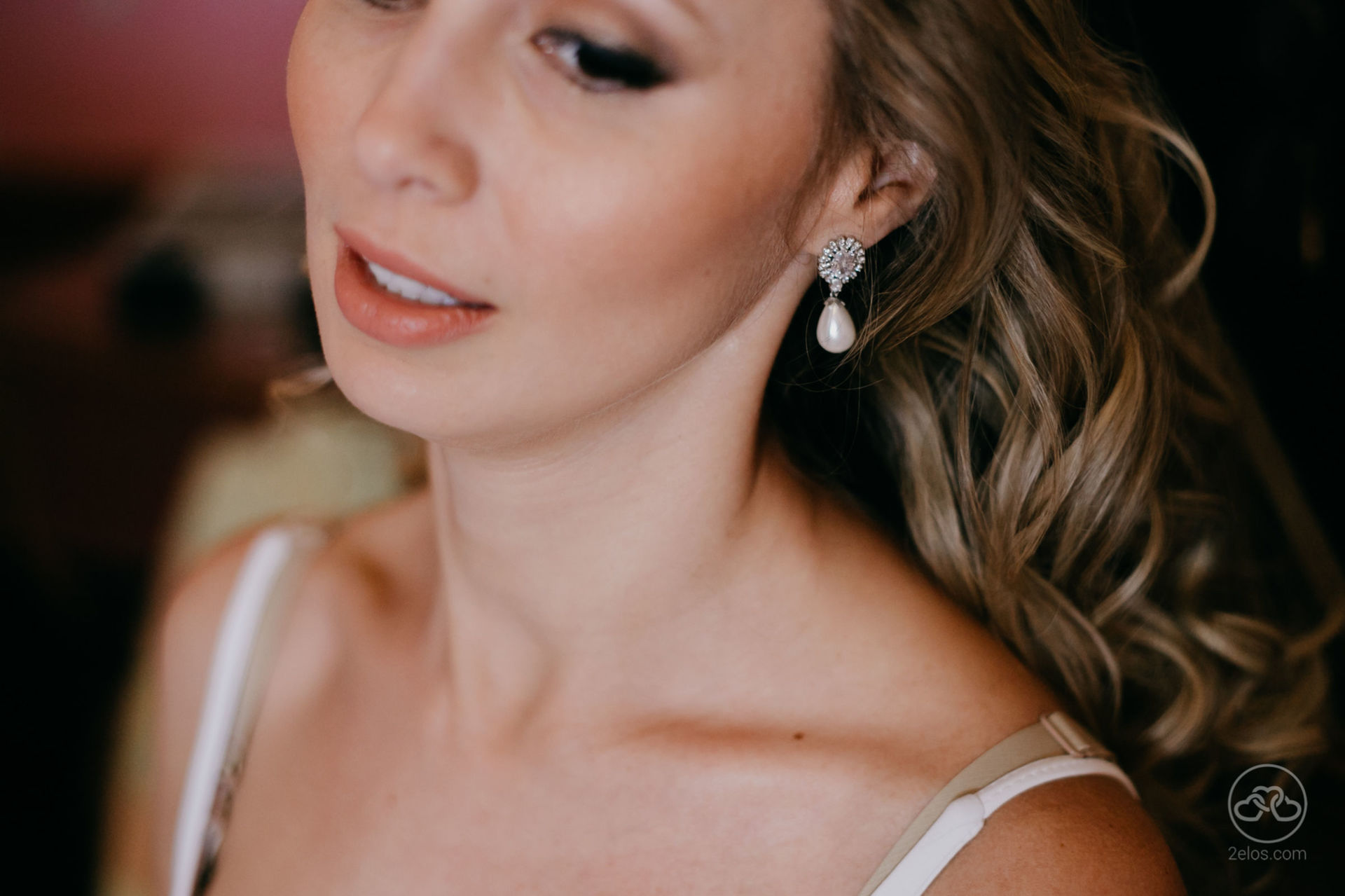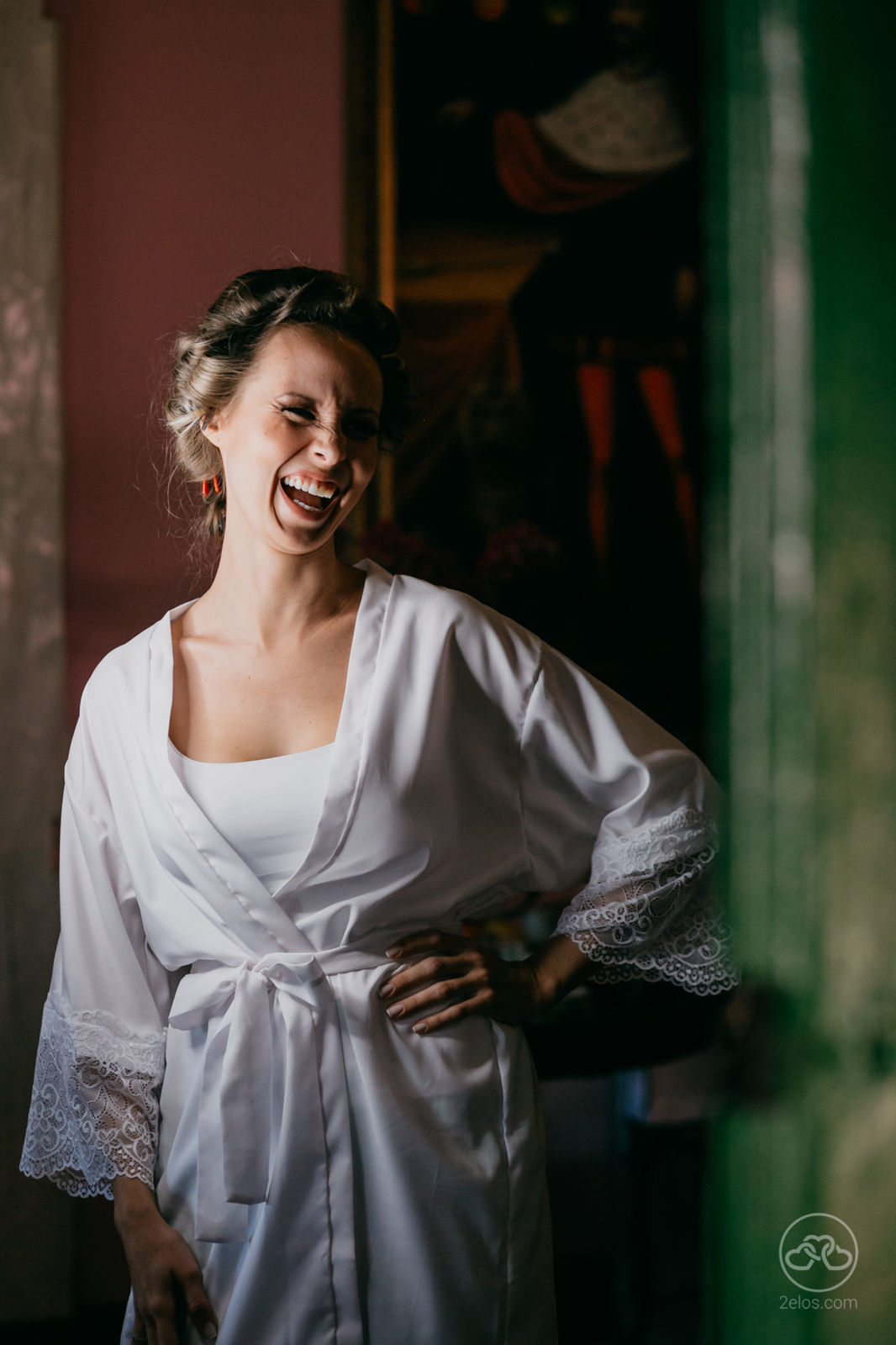 A noiva e o noivo se arrumaram nas casas da fazenda. Cada um em uma, claro!