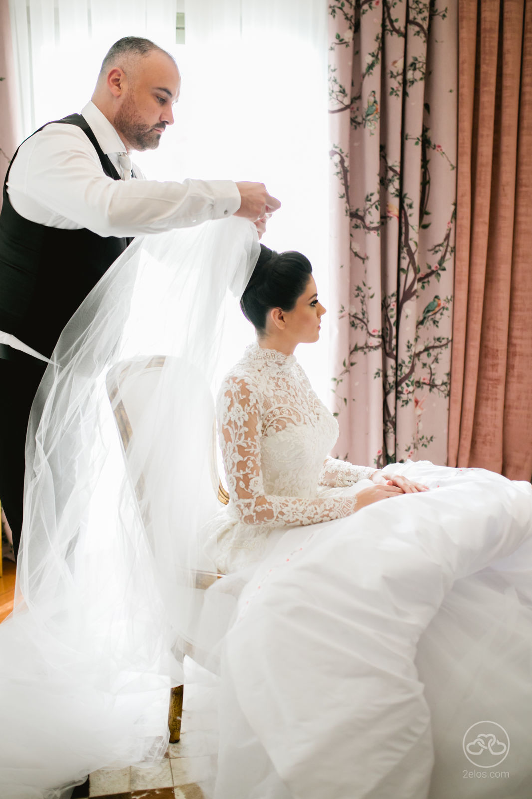 Júlia também teve o privilégio de arrumar os últimos detalhes de seu pai, aquele que a levou até o altar.