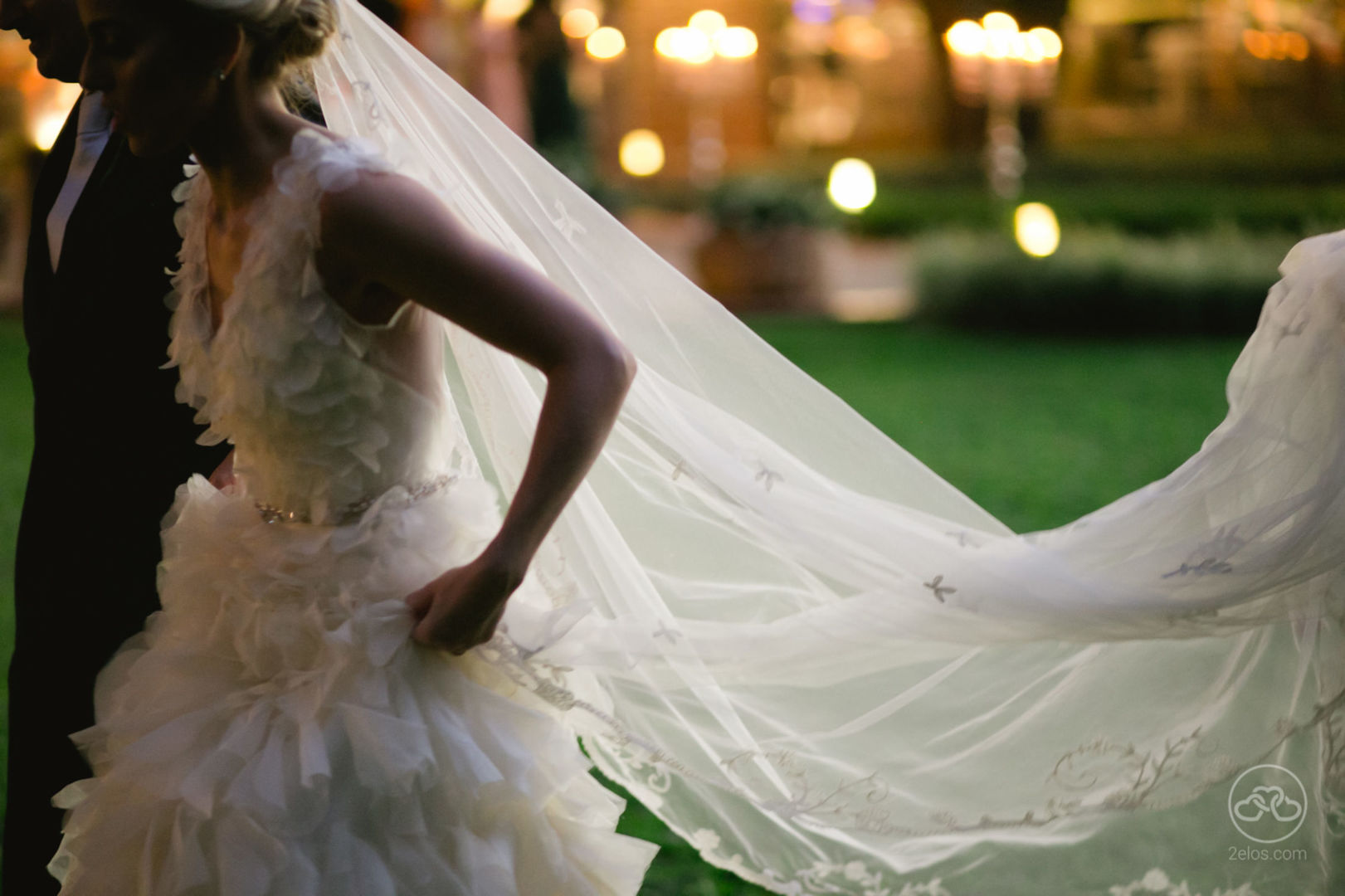 O cenário foi no Villa Casuarina que dava um belo contorno ao casal.