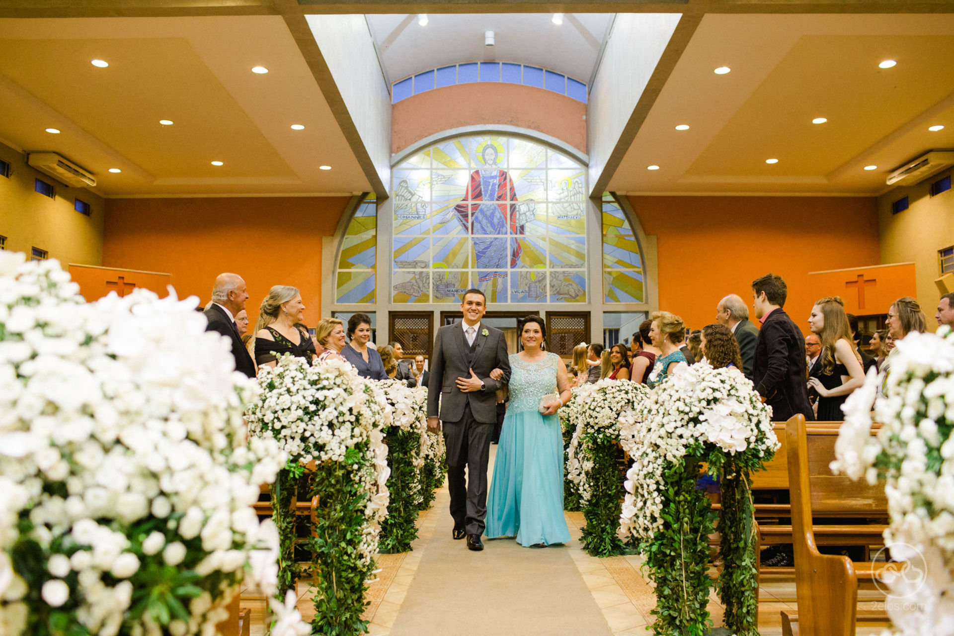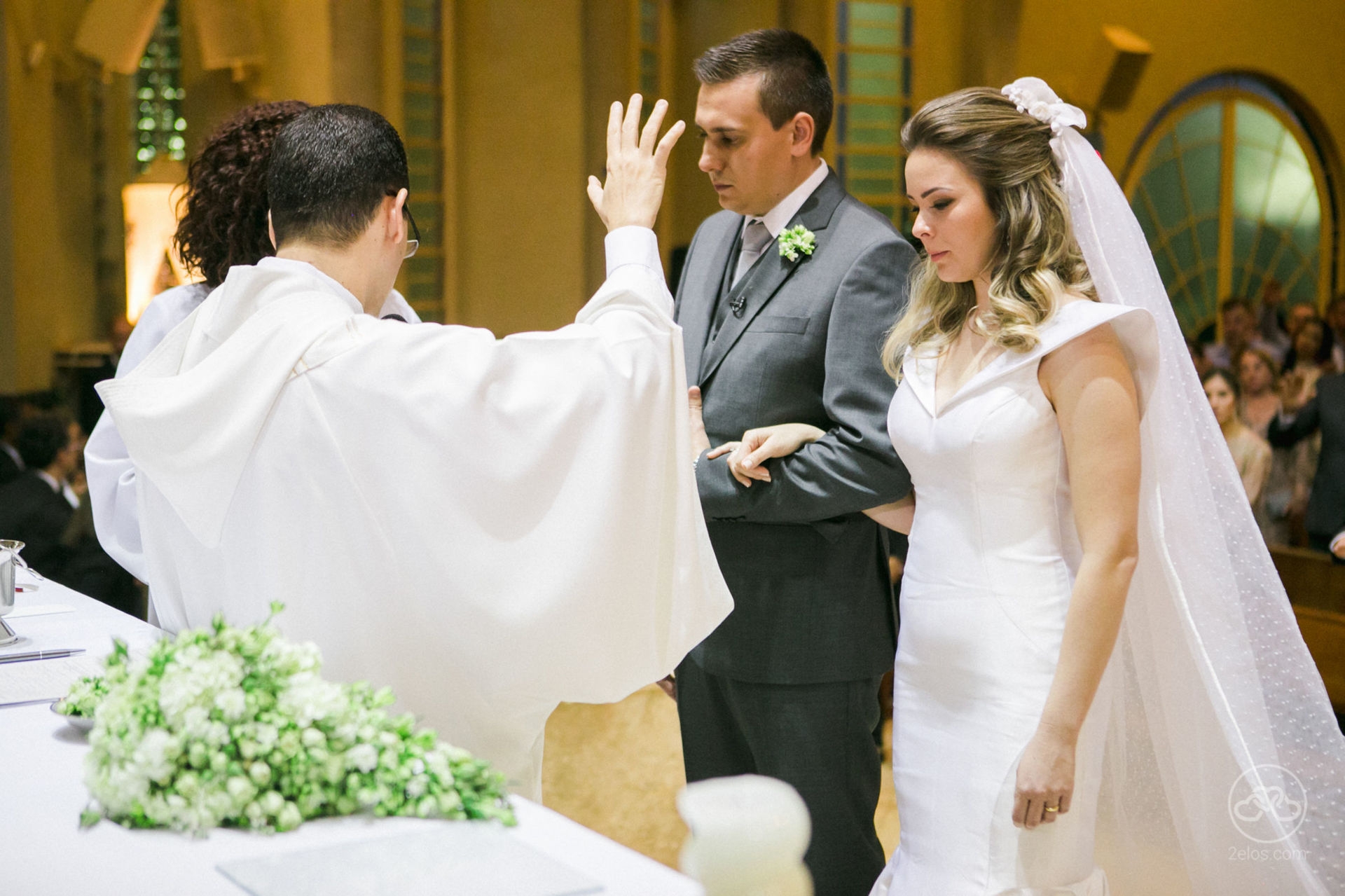 A cerimônia religiosa foi na igreja. A família e o casal são bastante religiosos. Em seguida, seguiram para a festa na fazenda.